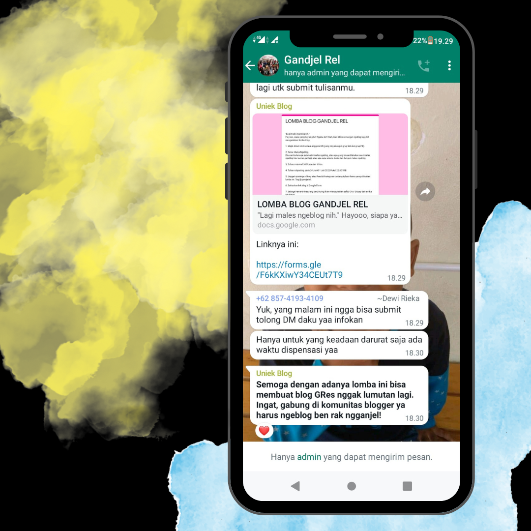 Seperti tulisan ini, kalau Mbak Uniek dan founder komunitas Gandjel Rel lainnya nggak koar-koar mulu di grup WhatsApp, mana mungkin aku bikin tulisan ini? Ewuh, Gaes. Yakin. Mereka yang selalu mengawalku di dunia blog selama ini. Tempatku belajar lho.